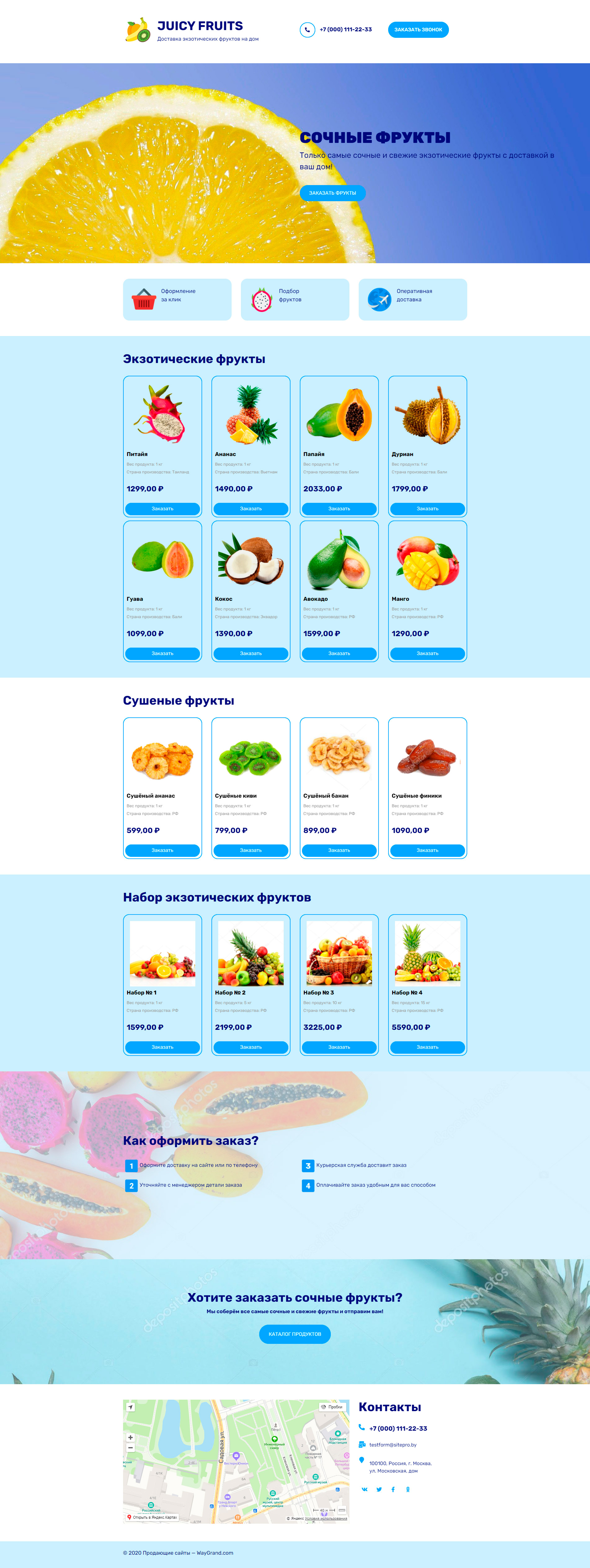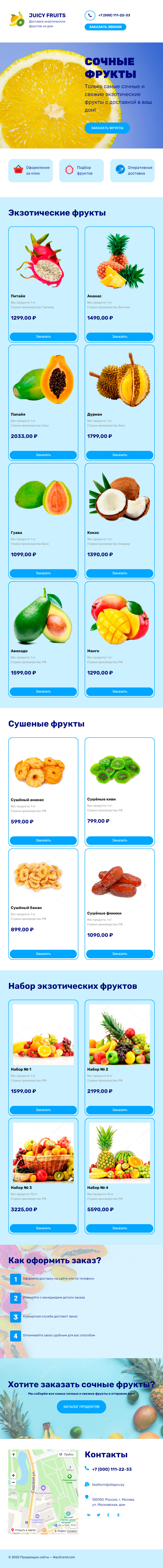 Закажите готовый продающий сайт лендинг #1723202 в Борисове за 1-3 дня «под ключ»: свёрстан, отрисован и готов к рекламе. Тематика шаблона «Доставка экзотических фруктов».