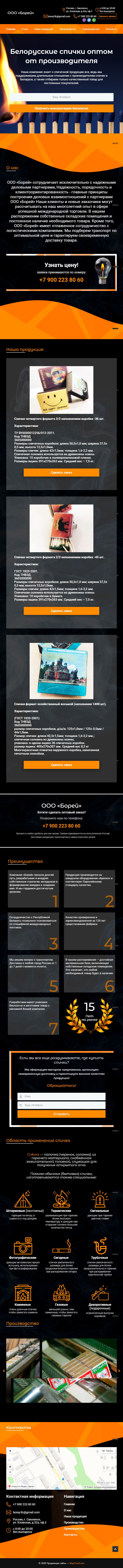 Закажите готовый продающий сайт лендинг #115 в Борисове за 1-3 дня «под ключ»: свёрстан, отрисован и готов к рекламе. Тематика шаблона «Белорусские спички оптом от производителя».